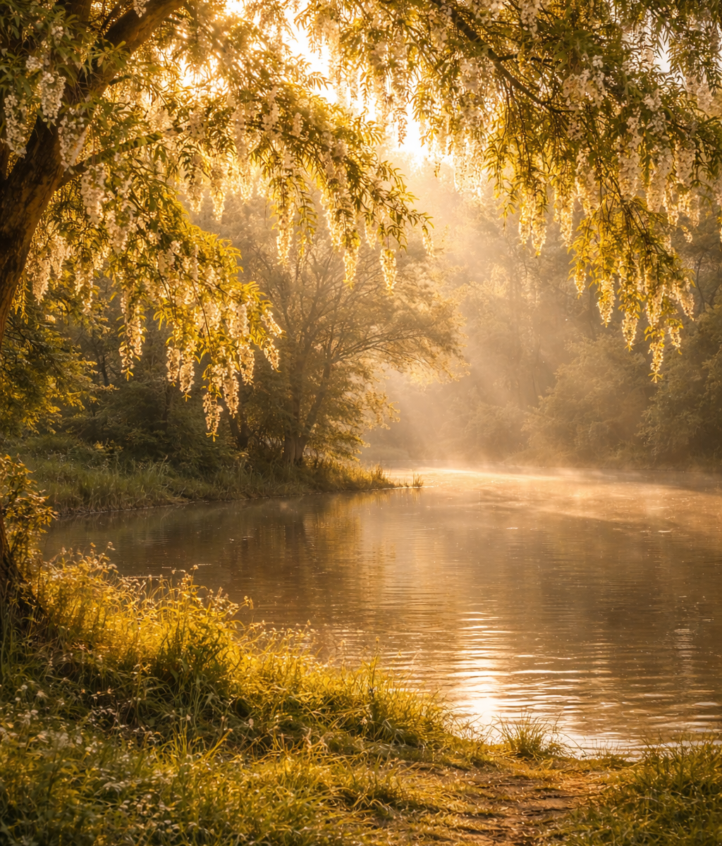 Akacje błyszczały w promieniach słońca, a światło układało się na liściach tak, jakby znało ich imiona.