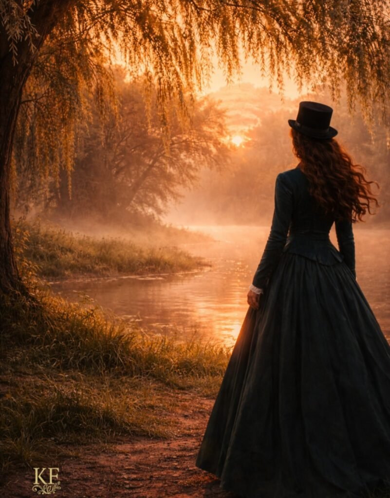 Była częścią krajobrazu, jakby wtopiła się w zieleń i światło,jakby wierzby przyjęły ją pod swoje ciche ramiona.