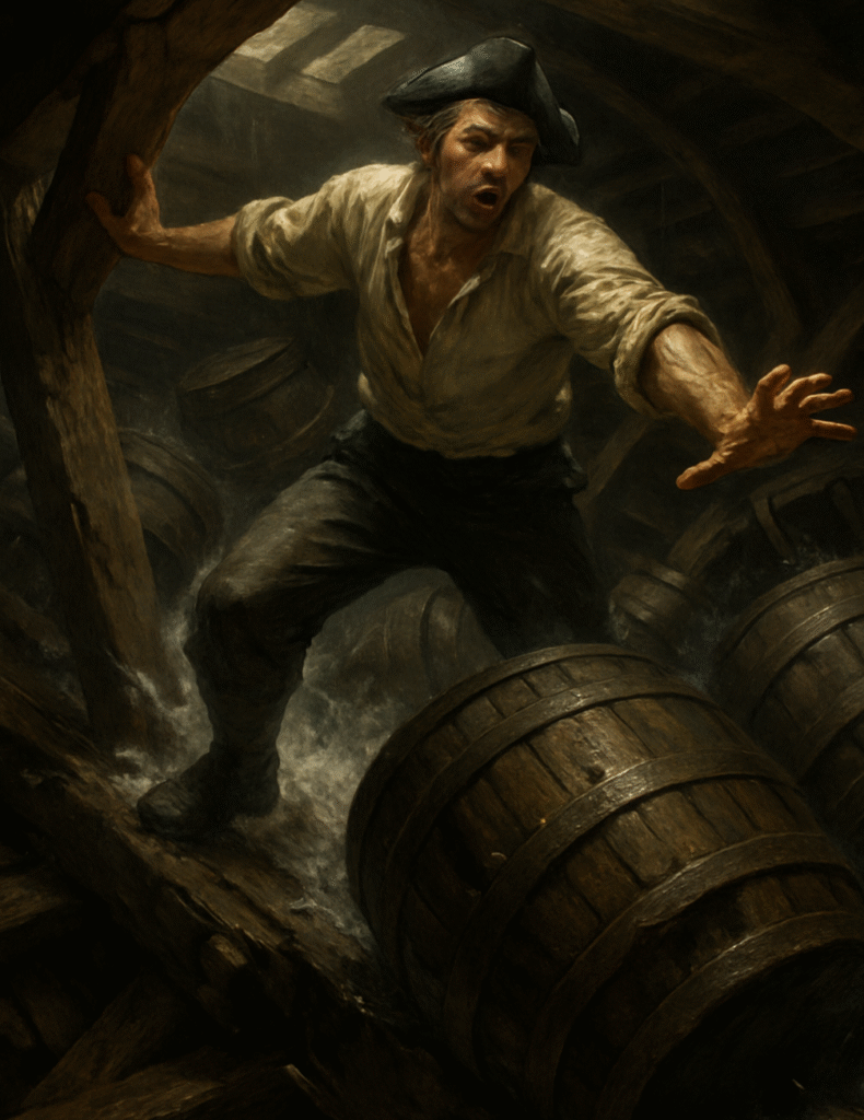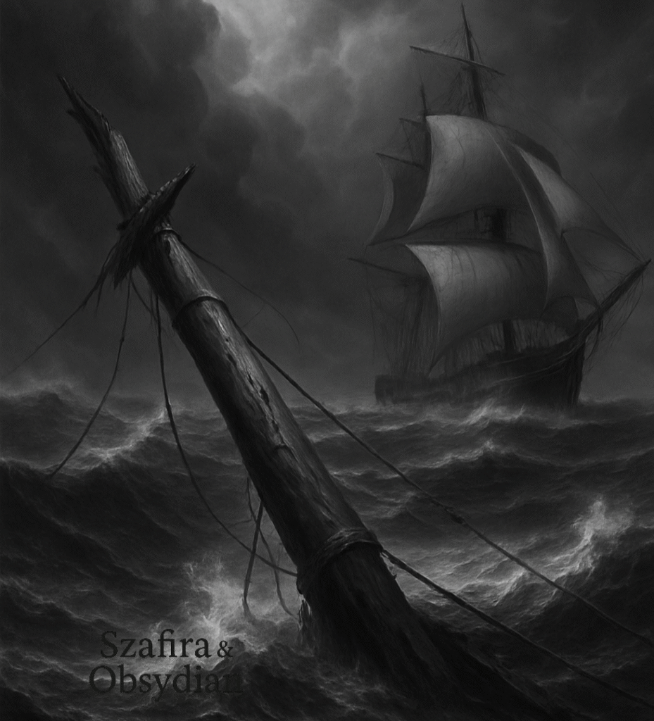 Obsydian stał przy relingu, pilnując, by każdy podmuch wiatru, każda zmiana fali była wychwycona, zanim dotknie rannego okrętu. Wszyscy byli zmęczeni i wyczerpani – zderzeniem z siłami natury której się nie spodziewali.