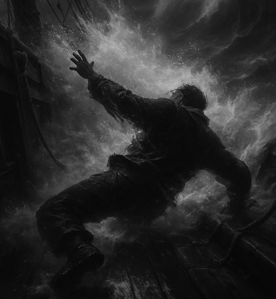 W dniu gdzie myśleli, że zatoną, gdy fale niosły – rozszarpane części ich statku głęboko w morze.