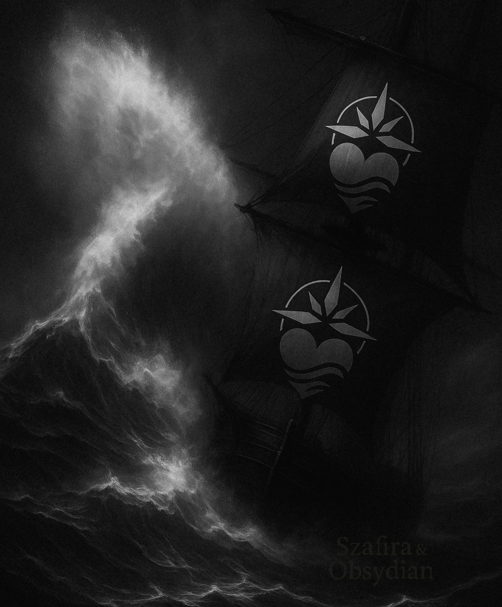 Obsydian stał przy relingu, pilnując, by każdy podmuch wiatru, każda zmiana fali była wychwycona, zanim dotknie rannego okrętu. Wszyscy byli zmęczeni i wyczerpani – zderzeniem z siłami natury której się nie spodziewali.