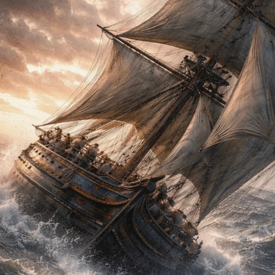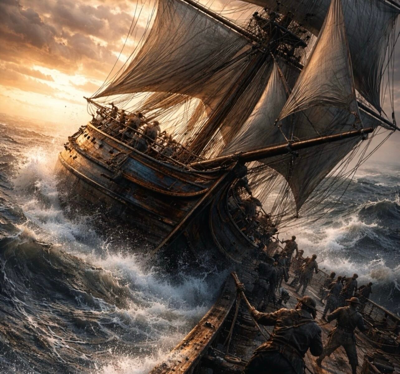 Podmuch wiatru uderzył w oba statki z siłą, która łamie drewno.