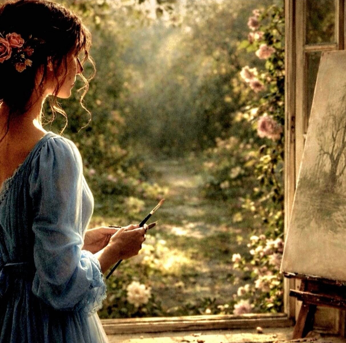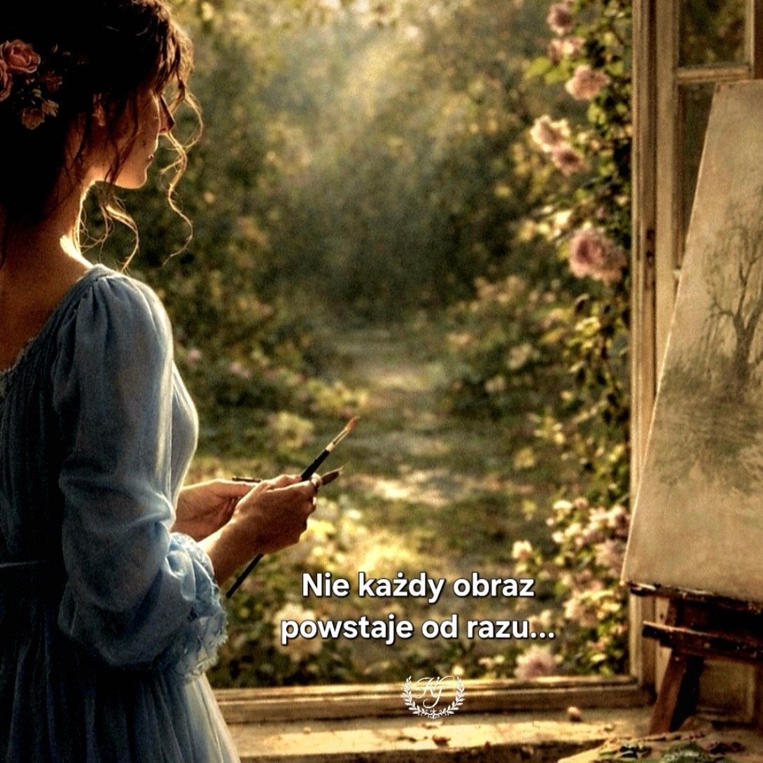 Poranek ukoił jej myśli i obudził w niej na nowo potrzebę dokończenia obrazu, który od kilku dni pozostawał niedomknięty.