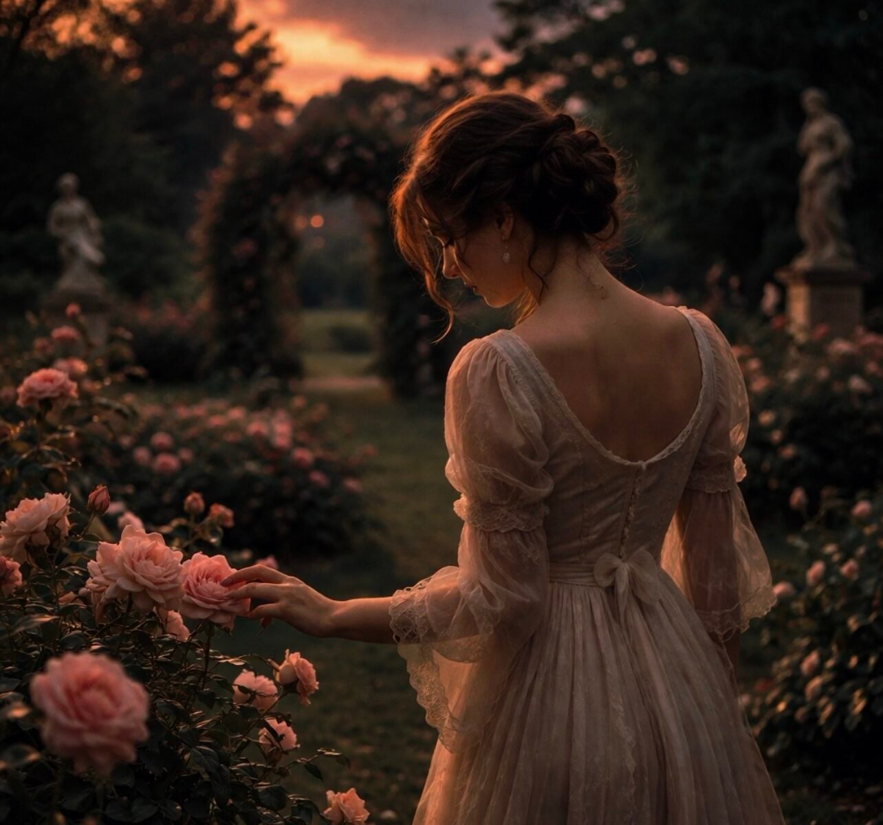 Serafina zatrzymała się przy różach, jakby chciała uchwycić moment, który nie potrzebował słów.