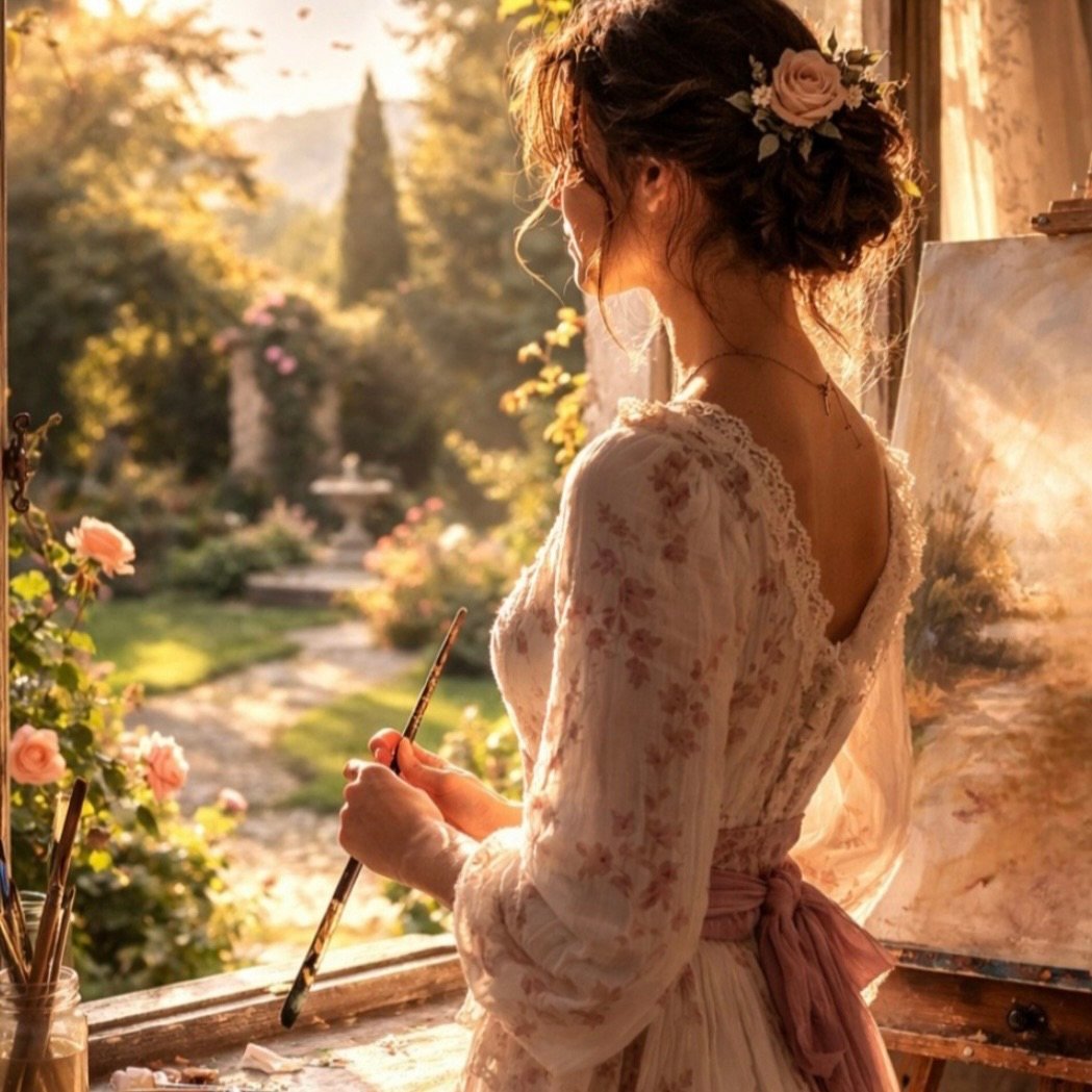 Spojrzała spokojnie na swóǰ ogród, aby myśl ułożyla się lekko jak jej róże tworzące paletę subtelnych barw..