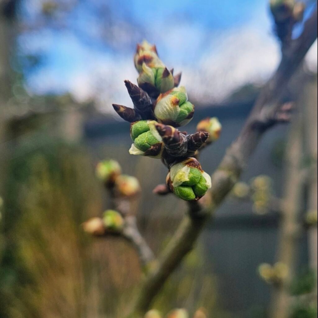 Refleksja : ,, Pąki śliwki w ciszy poranka ” jest- inspiracją mojej pięknej śliwki, która dojrzewała powoli i spokojnie w ciszy i w towarzystwie ptaszków.