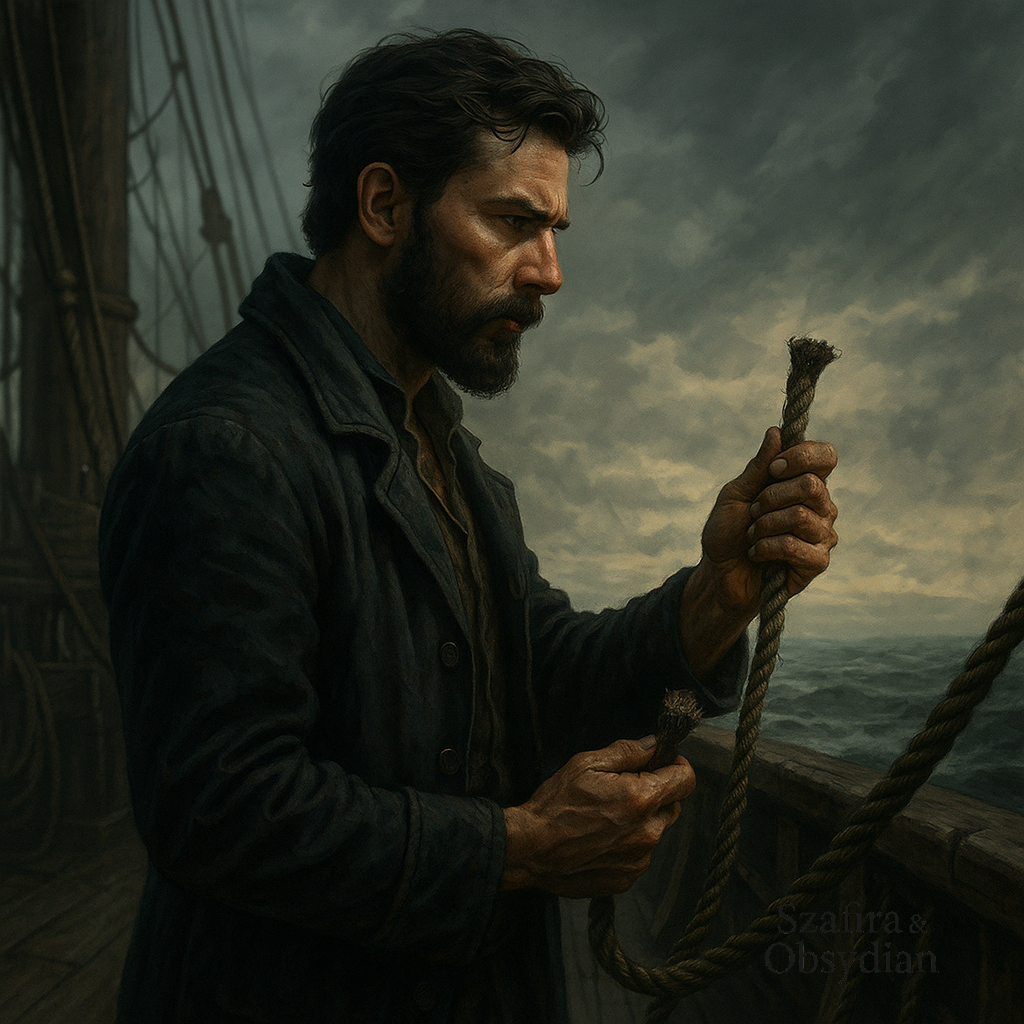 Obsydian stał przy relingu, pilnując, by każdy podmuch wiatru, każda zmiana fali była wychwycona, zanim dotknie rannego okrętu. Wszyscy byli zmęczeni i wyczerpani – zderzeniem z siłami natury której się nie spodziewali.